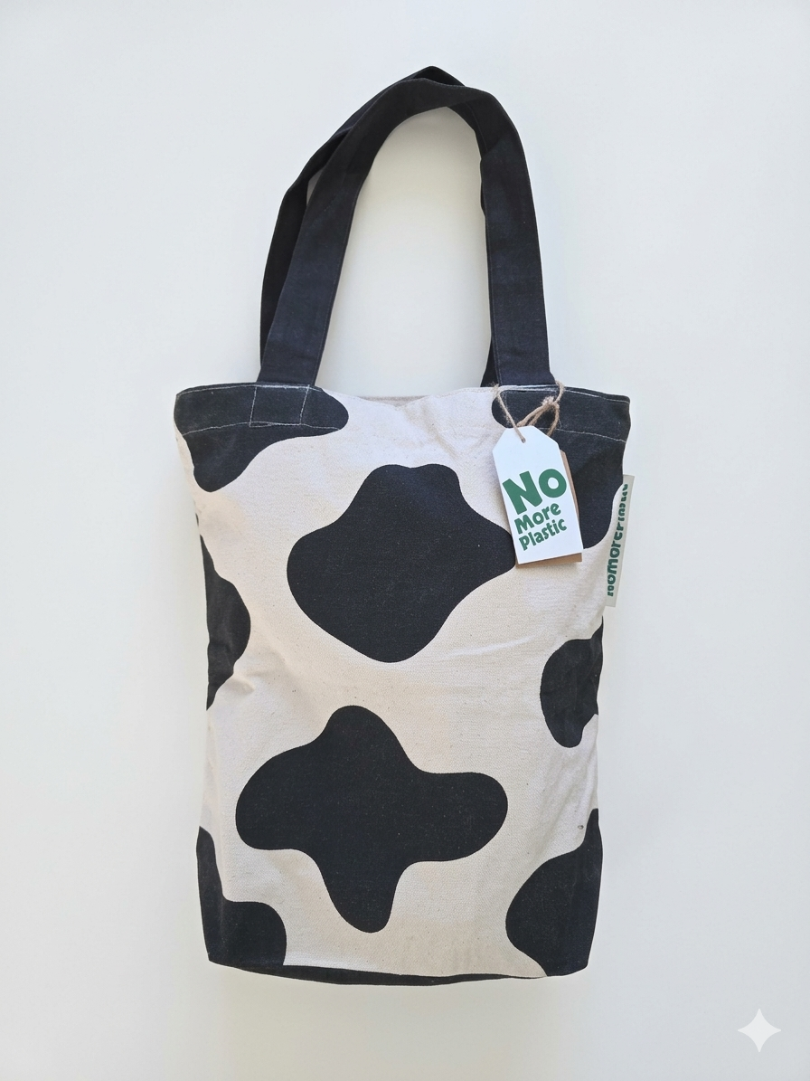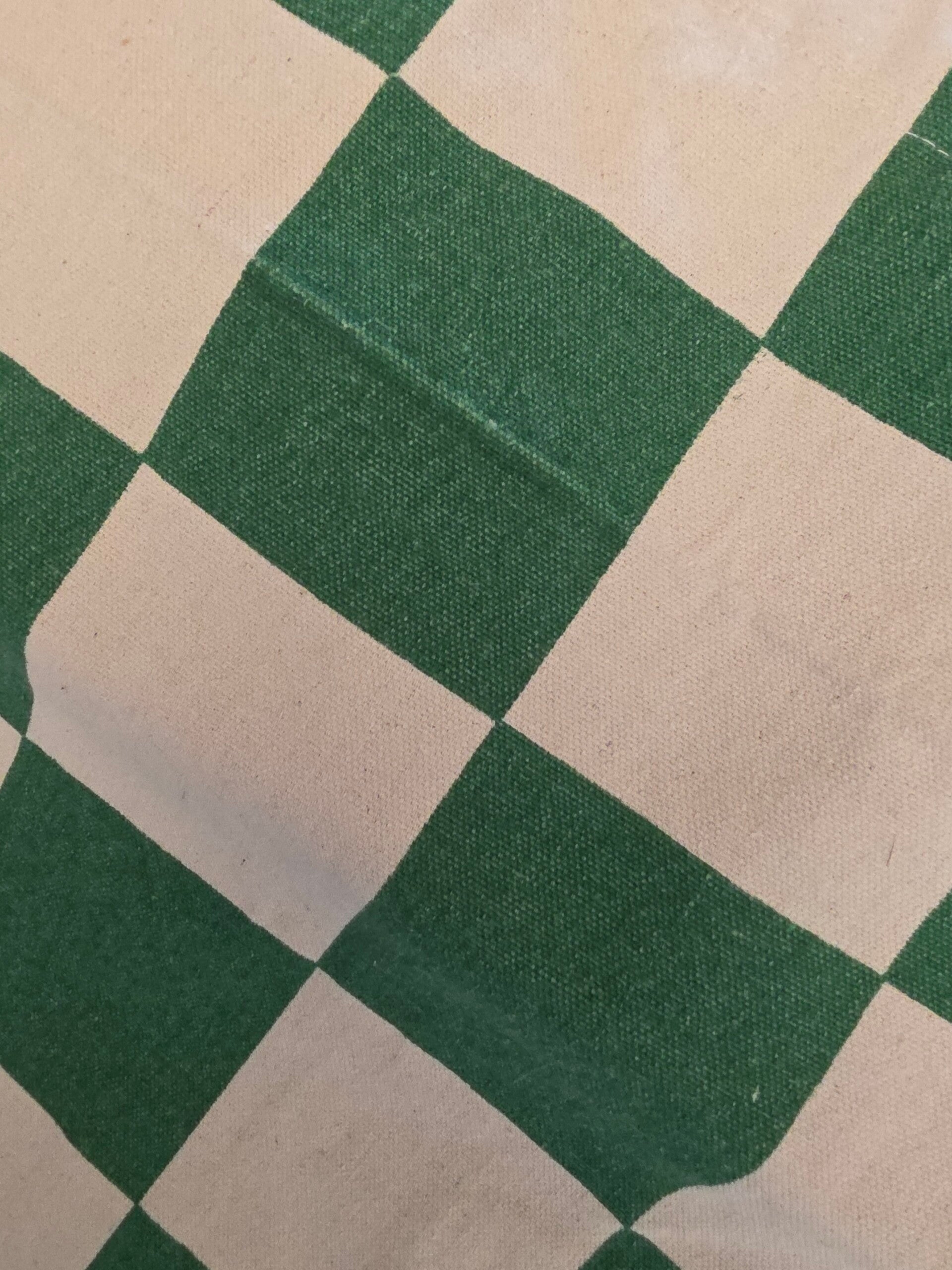 De tassen zijn gemaakt van gerecycled bedlinnen en tafellakens.De duurzame productie met dit nieuwe basismateriaal is een lastig proces. De gifvrije verf op waterbasis, waarmee de tassen worden bedrukt, geeft weleens wat wazige strepen of kleine kringen.Vaak niet eens te zien.