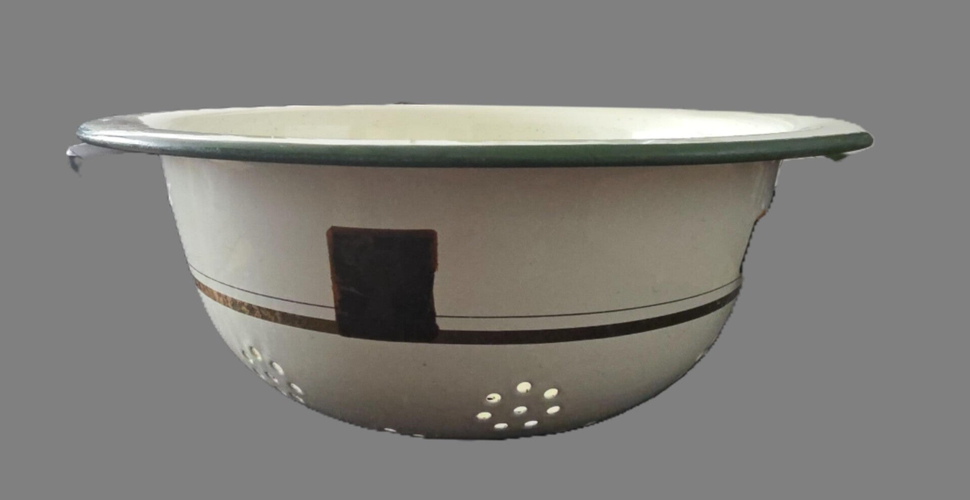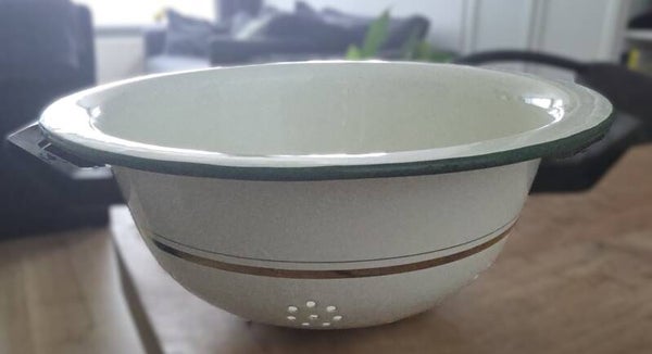 De kleuren zijn nog mooi waardoor dit vergiet een mooi decoratief item is. Zet er een bloemetje in of gebruik hem gewoon in je keuken.