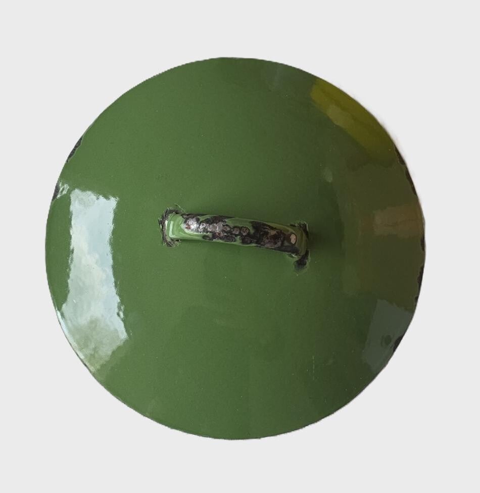 Vintage groene geëmailleerde braadpan. Diameter 24 cm.