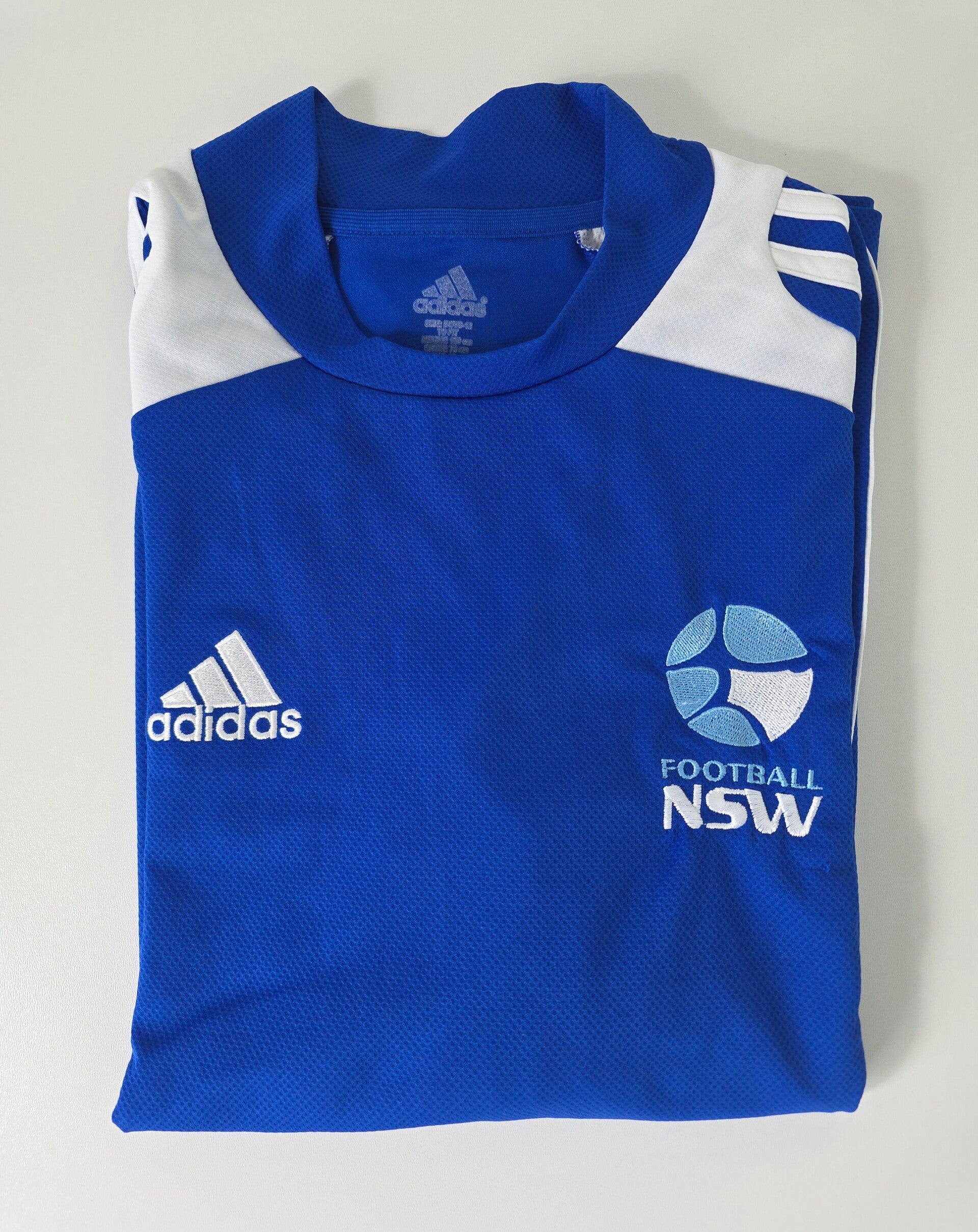 Officieel trainingsshirt van Football New South Wales, de regionale voetbalbond van Australië. Strak Adidas‑design met drie strepen op de schouders en een frisse blauw‑witte kleurcombinatie. Licht, sportief en ideaal voor training, casual outfits of iedereen die graag iets draagt dat je niet op elke hoek van de straat ziet.